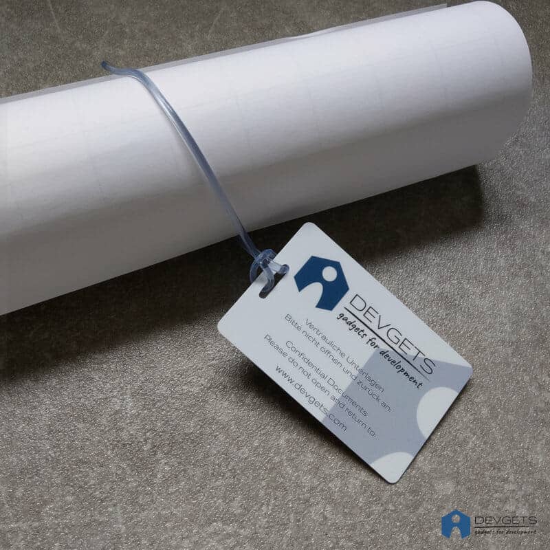 Mit beschreibbarem Bereich auf der Rückseite.