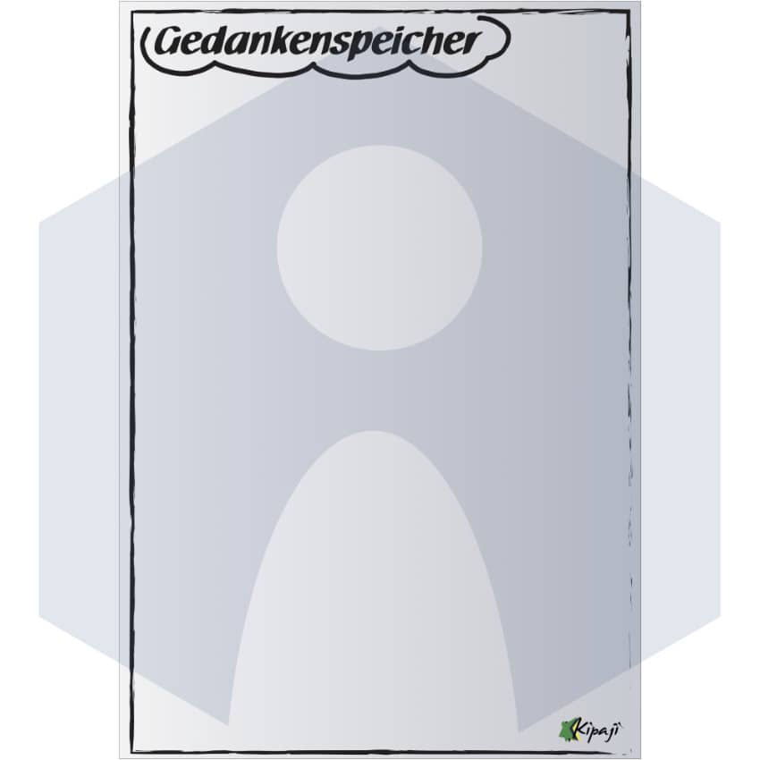 Ob Fragen, offene Themen oder noch zu klärende Prozesspunkte – auf dem Gedankenspeicher ist Platz für alle Gedanken, die präsent bleiben sollten. Im Workshop, Büro oder Besprechungsraum kann der Gedankenspeicher das Bild auflockern und zu einem festen Bestandteil des Workshops oder der täglichen Zusammenarbeit werden.