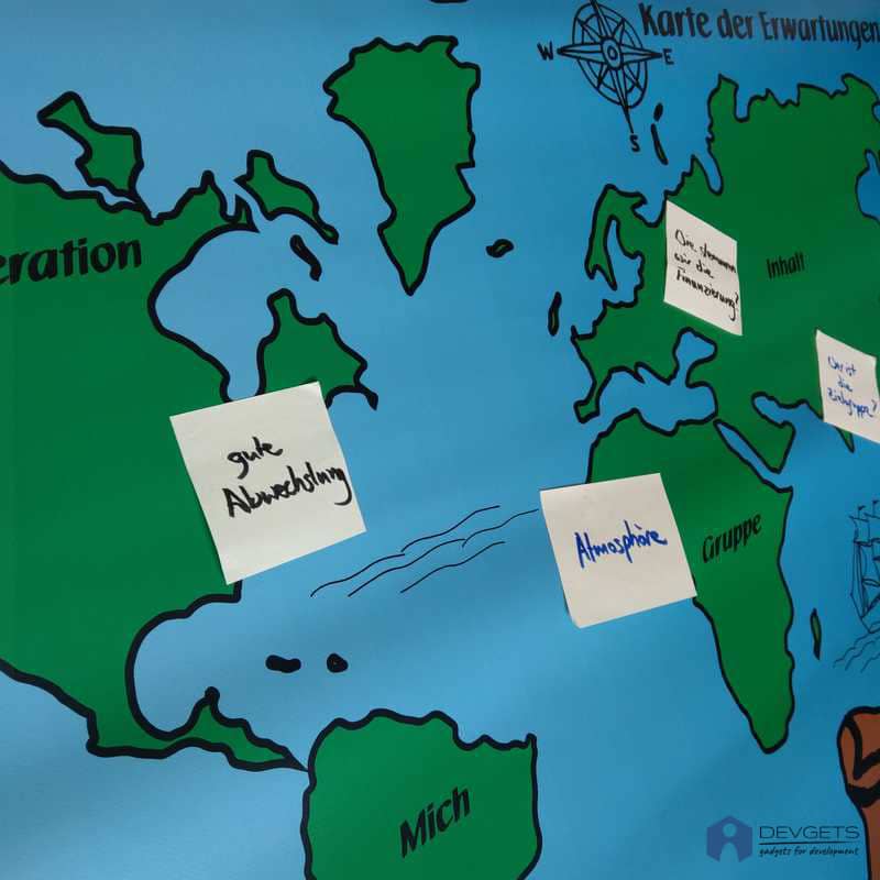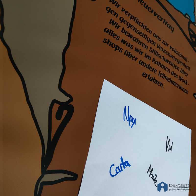 Mit Klebezetteln, Moderationskarten und einem DIN A4-Blatt für die Unterschriften schaffst Du einen geordneten Rahmen für Deinen Workshop.