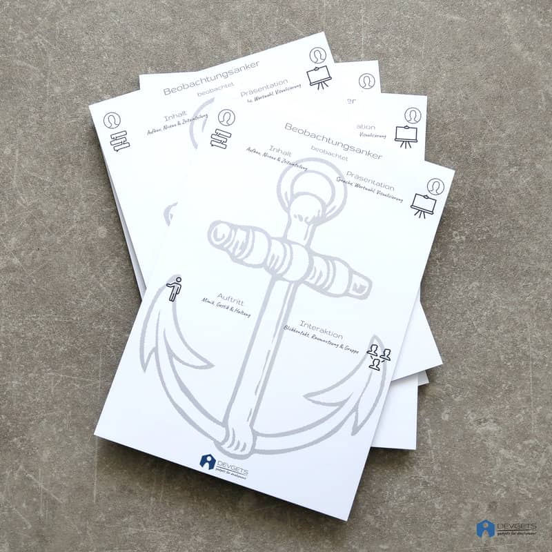 Das Kartenset ist auf Din A4-Format gedruckt und bietet einen strukturierten Rahmen, um ein umfangreiches und weiterbringendes Feedback zu geben.